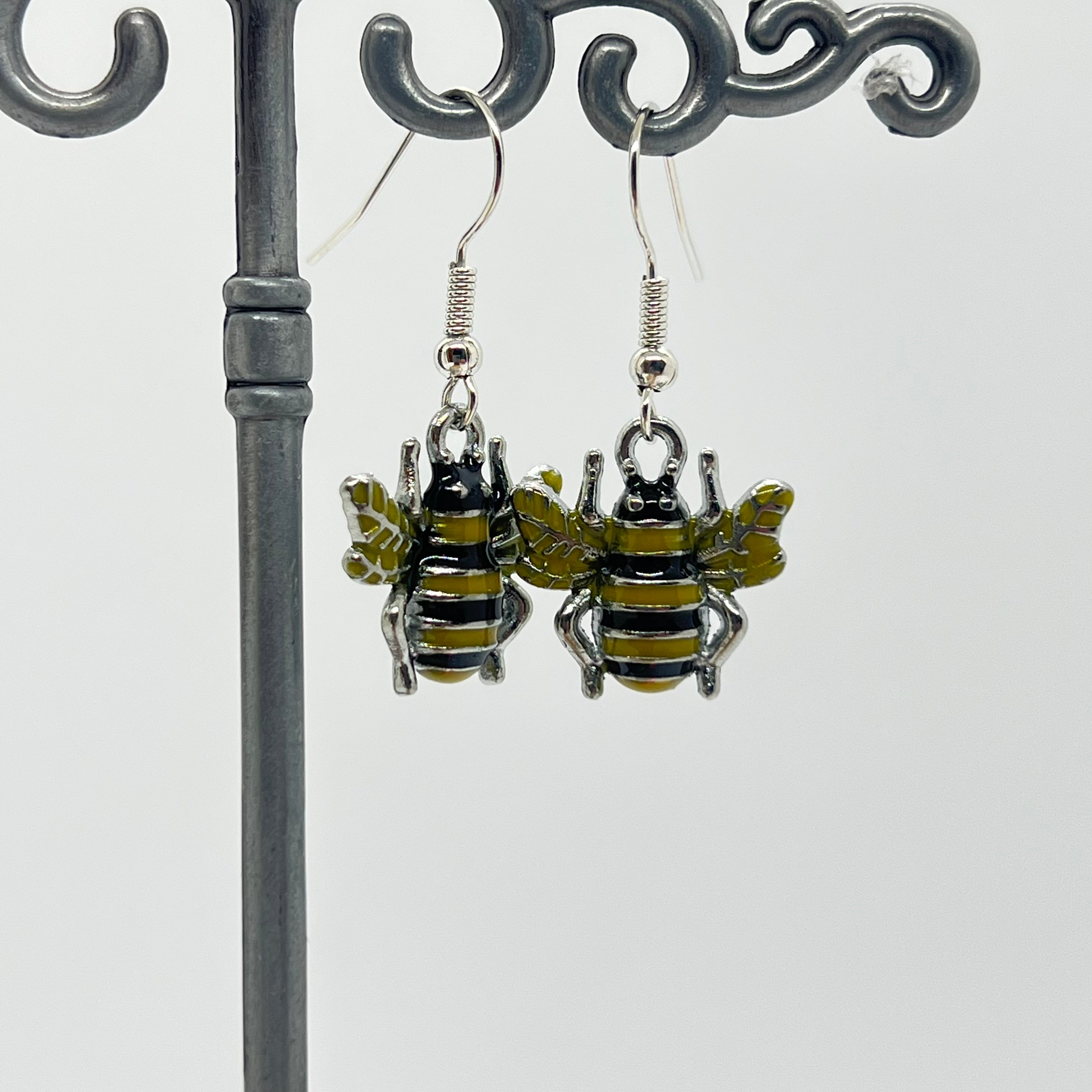 Disse smukke bi-øreringe i gul, sort og sølv bringer et strejf af naturens skønhed til din stil.