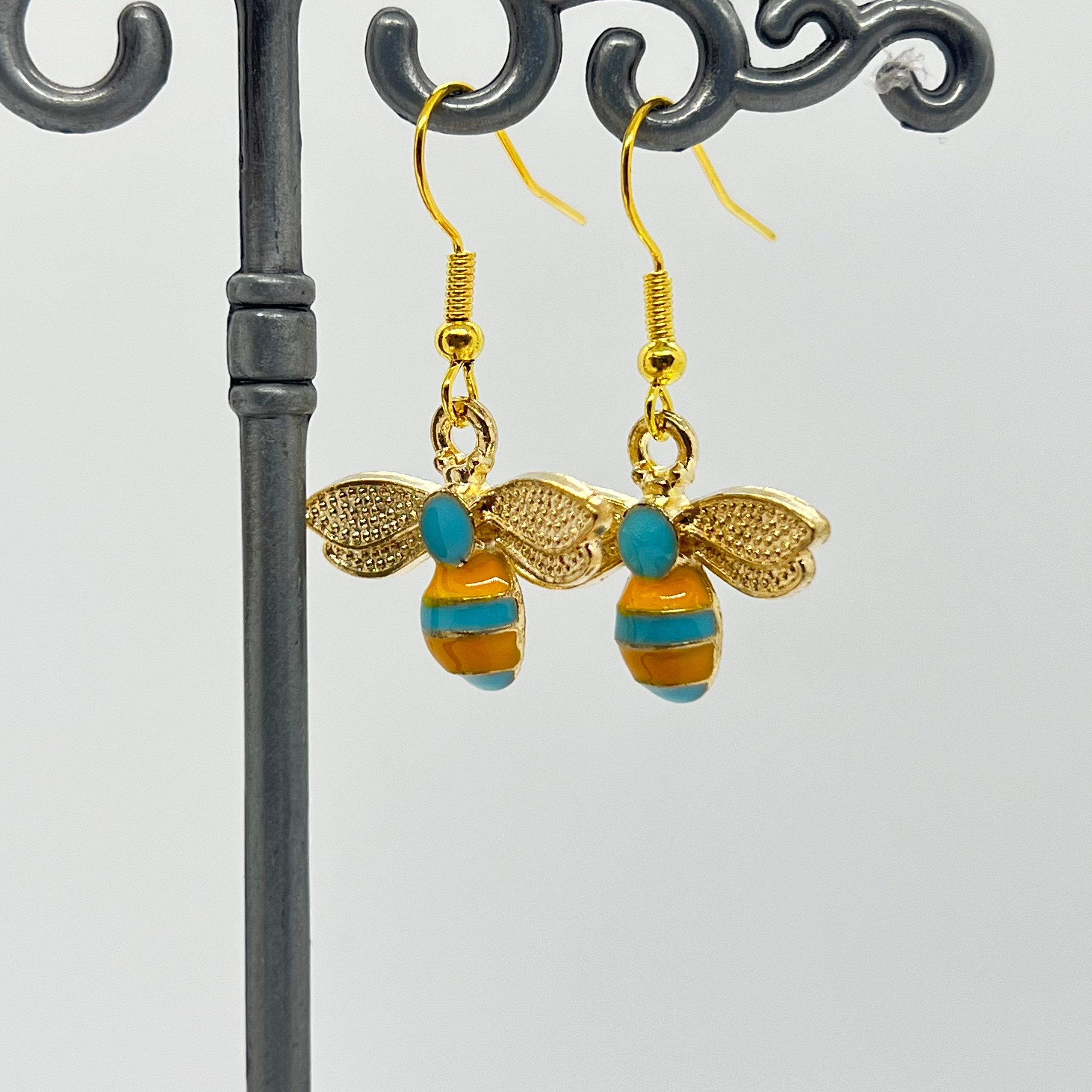 Søde Turkis Bi Øreringe Med Guld Vinger