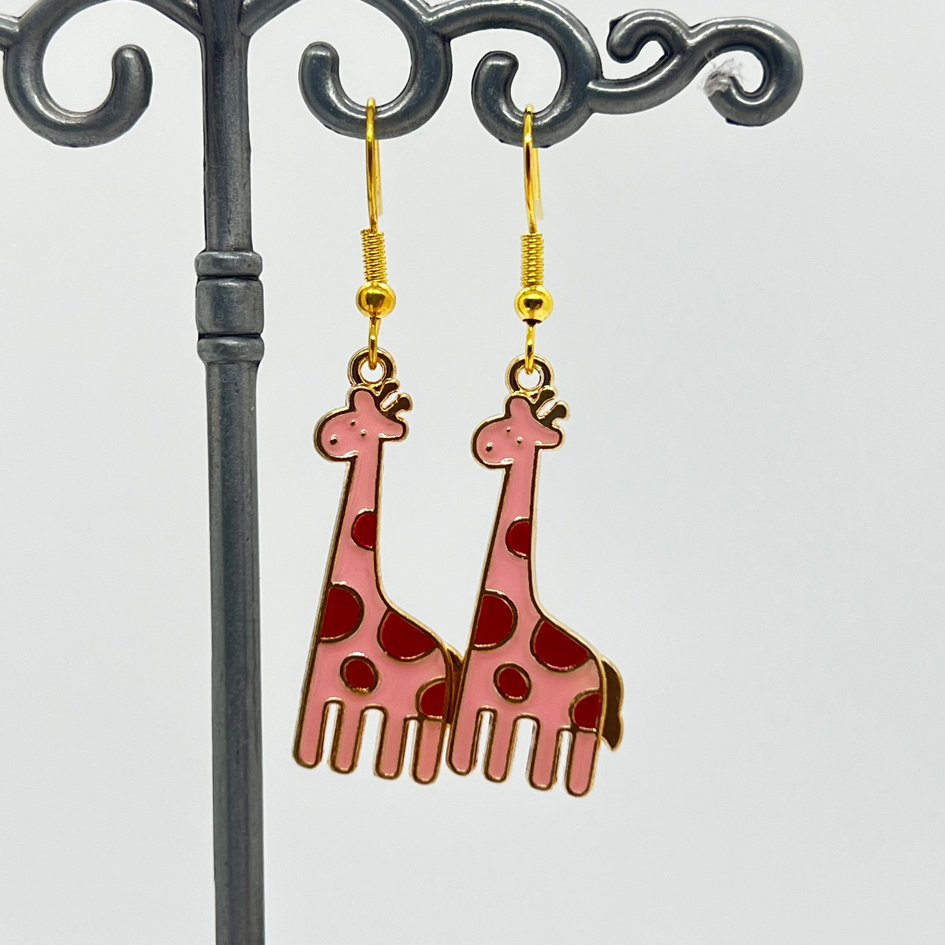 Sød Lyserød Giraf Med Røde Prikker Øreringe