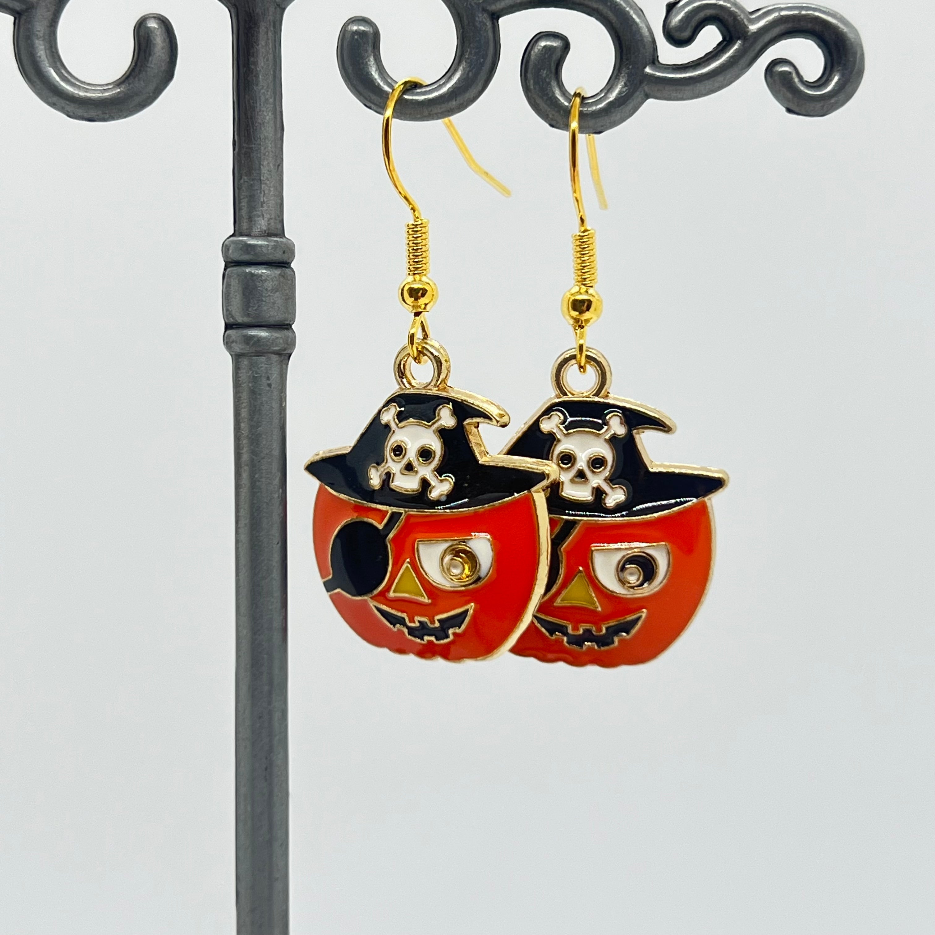 Gør din Halloween-stil ekstra eventyrlig med disse seje sørøvergræskar-øreringe!