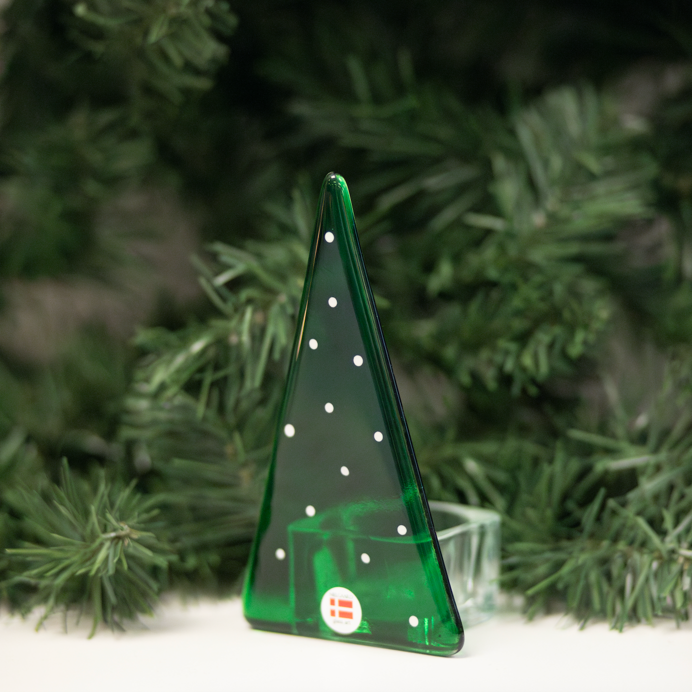 Perfekt håndlavet glas juletræ med fyrfadsstage – skaber en hyggelig og varm stemning i hjemmet.