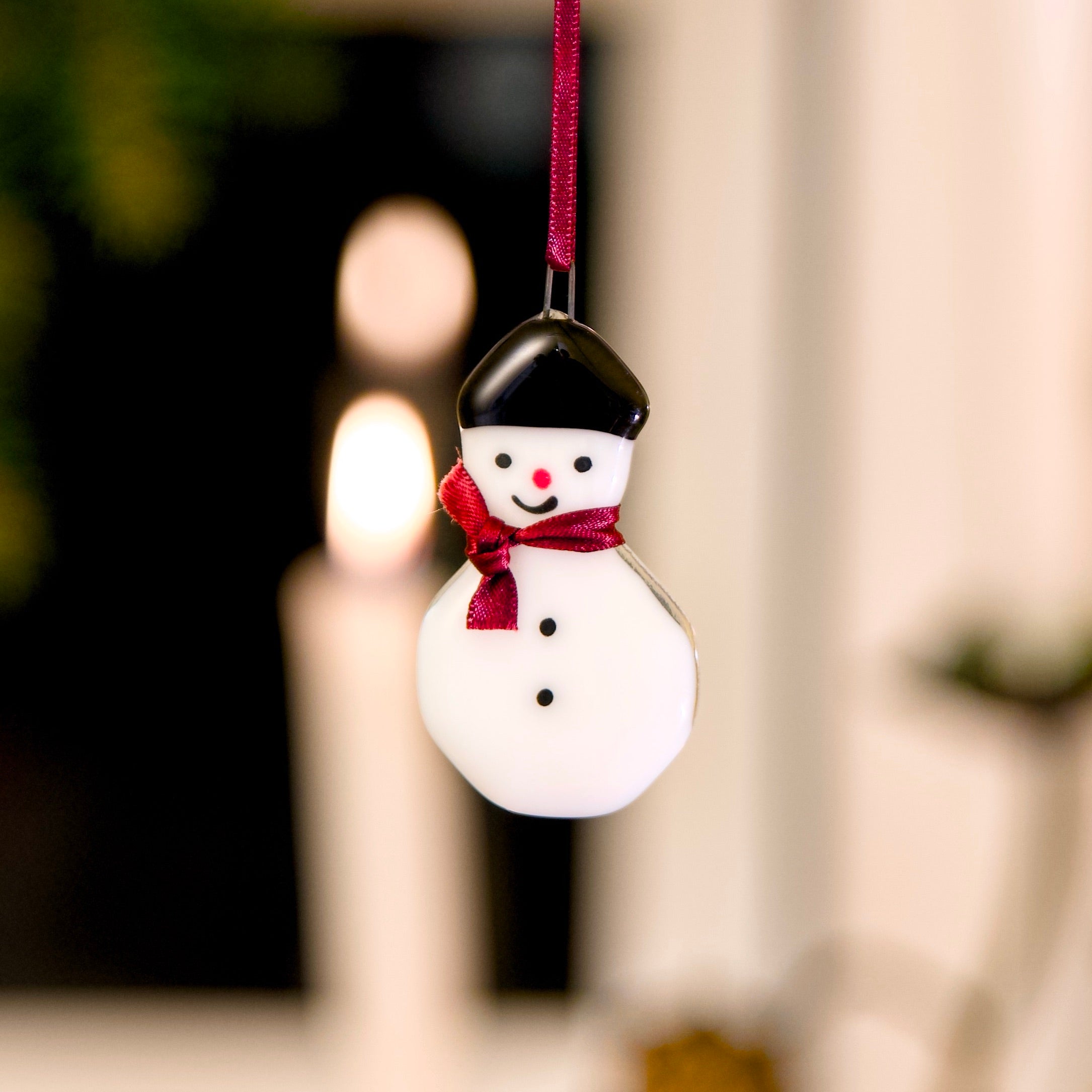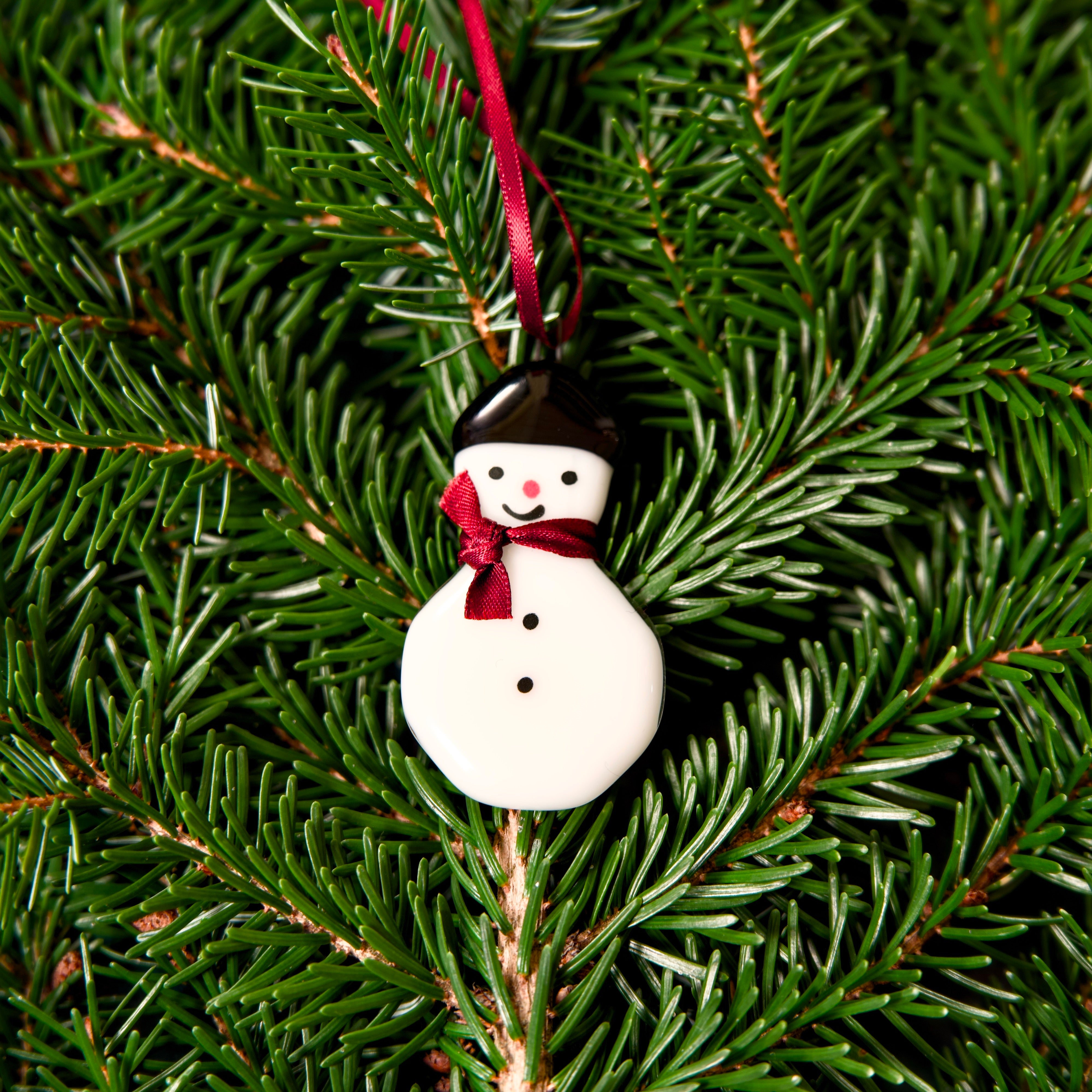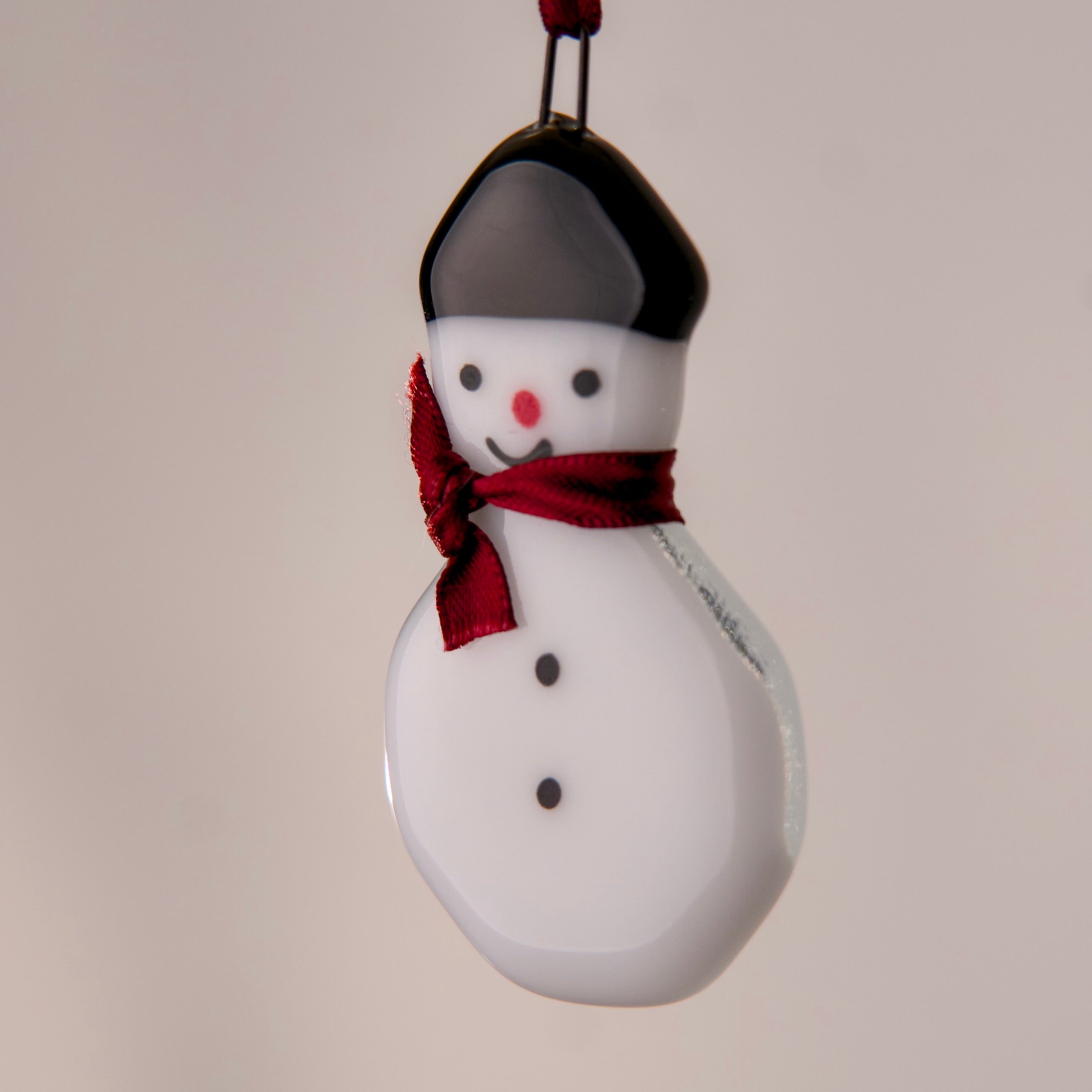 Perfekt håndlavet glas snemand til juletræet, vinduet eller som en betænksom gave.