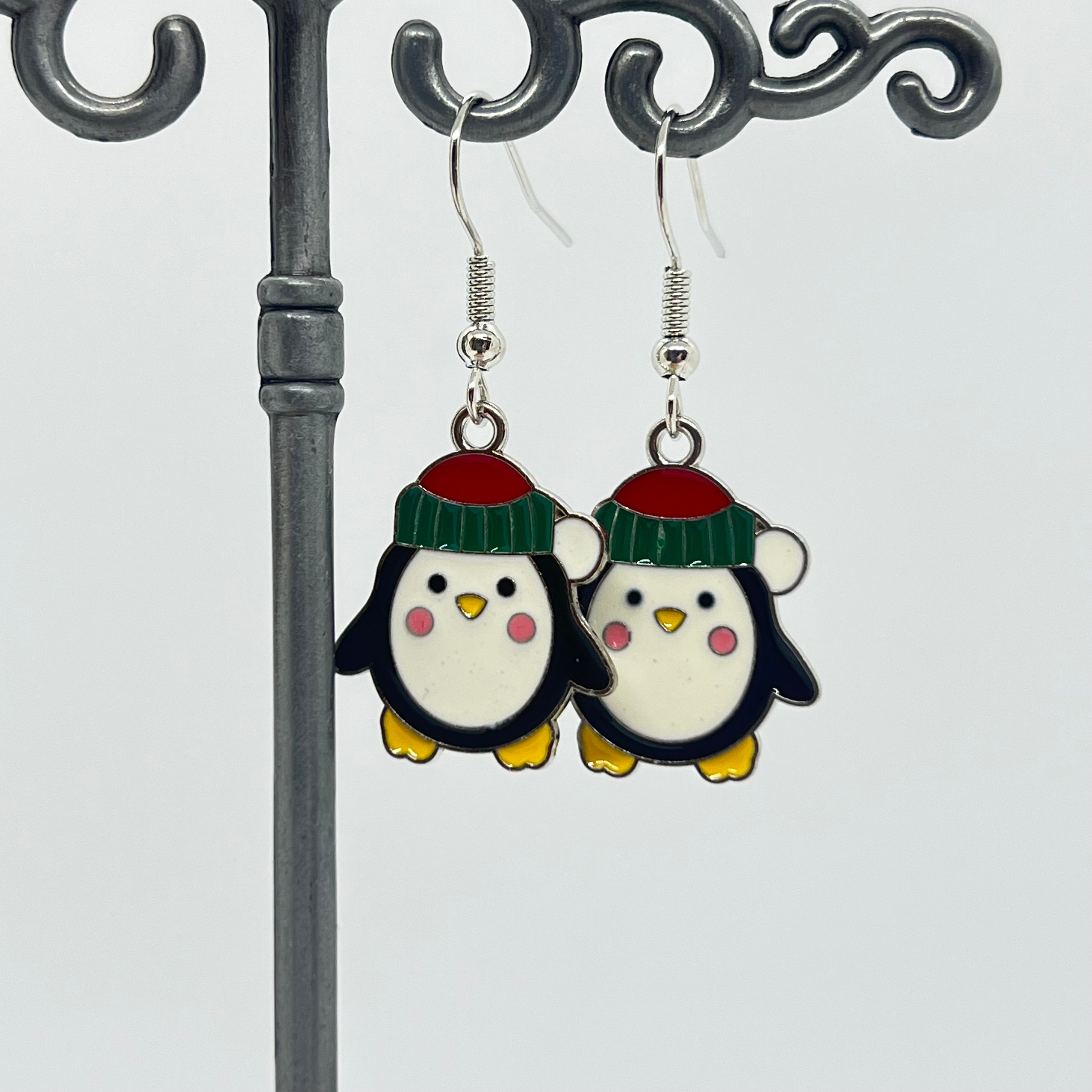 Sød Pingvin Med Nissehue Øreringe