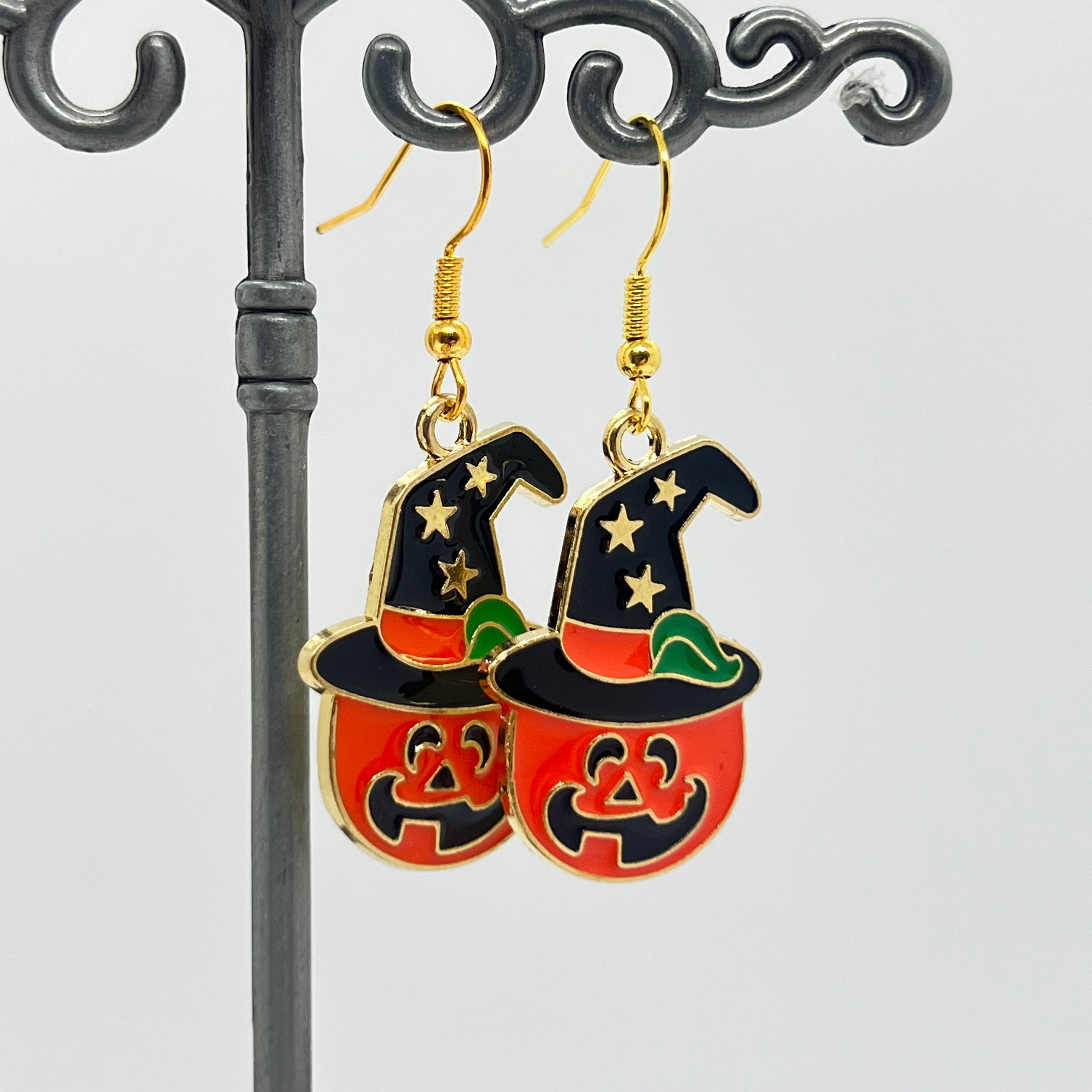 Make your style (un)cozy with these charming pumpkin earrings with a witch's hat.