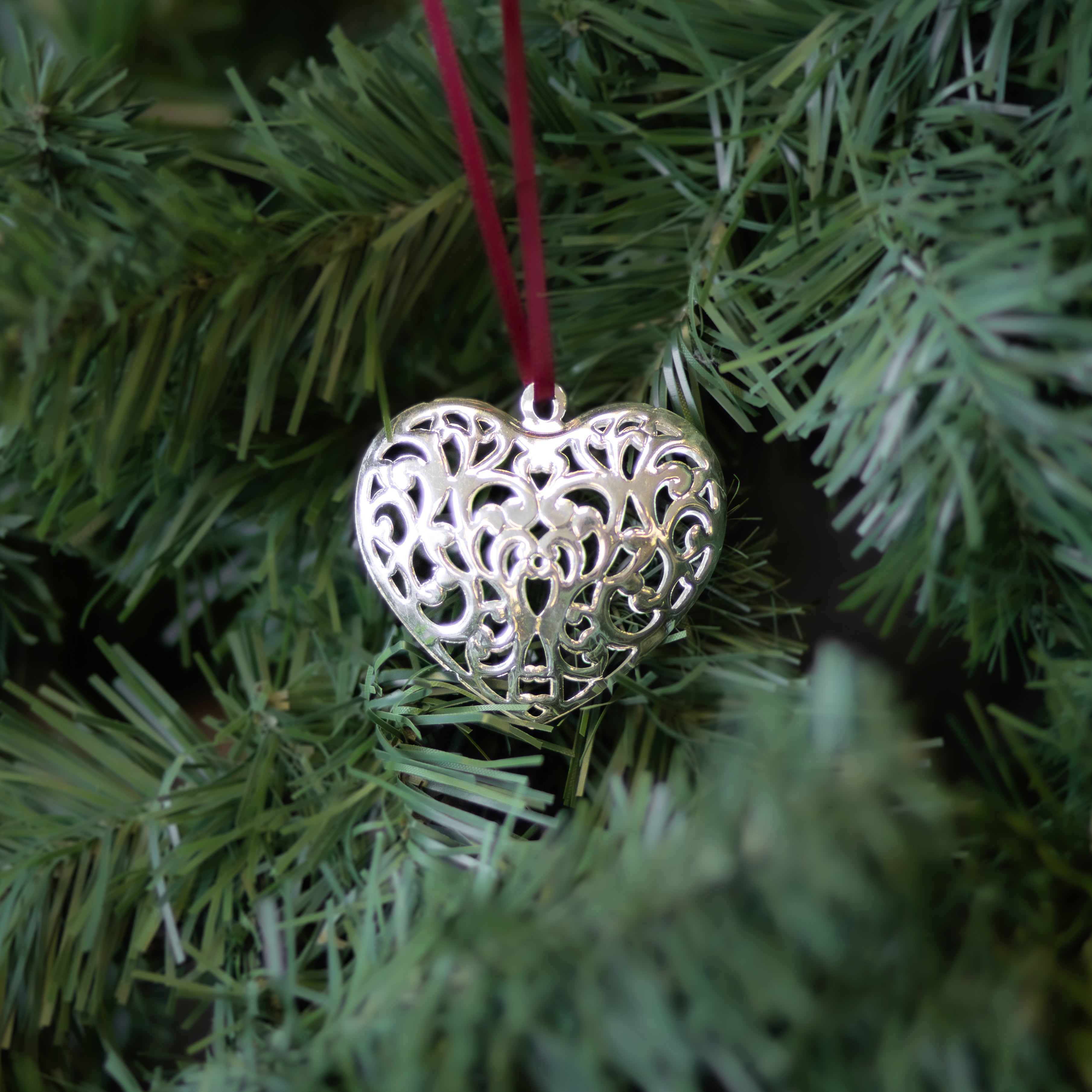 An elegant heart in silver-colored metal - perfect as a complement to your glass art or as a beautiful Christmas decoration.
